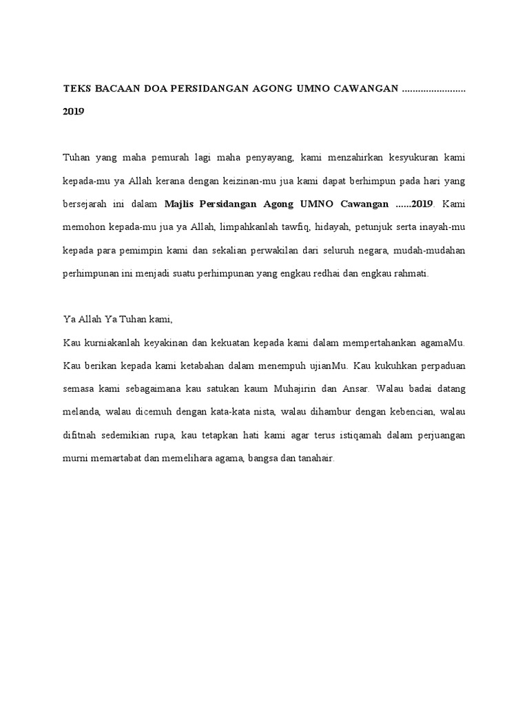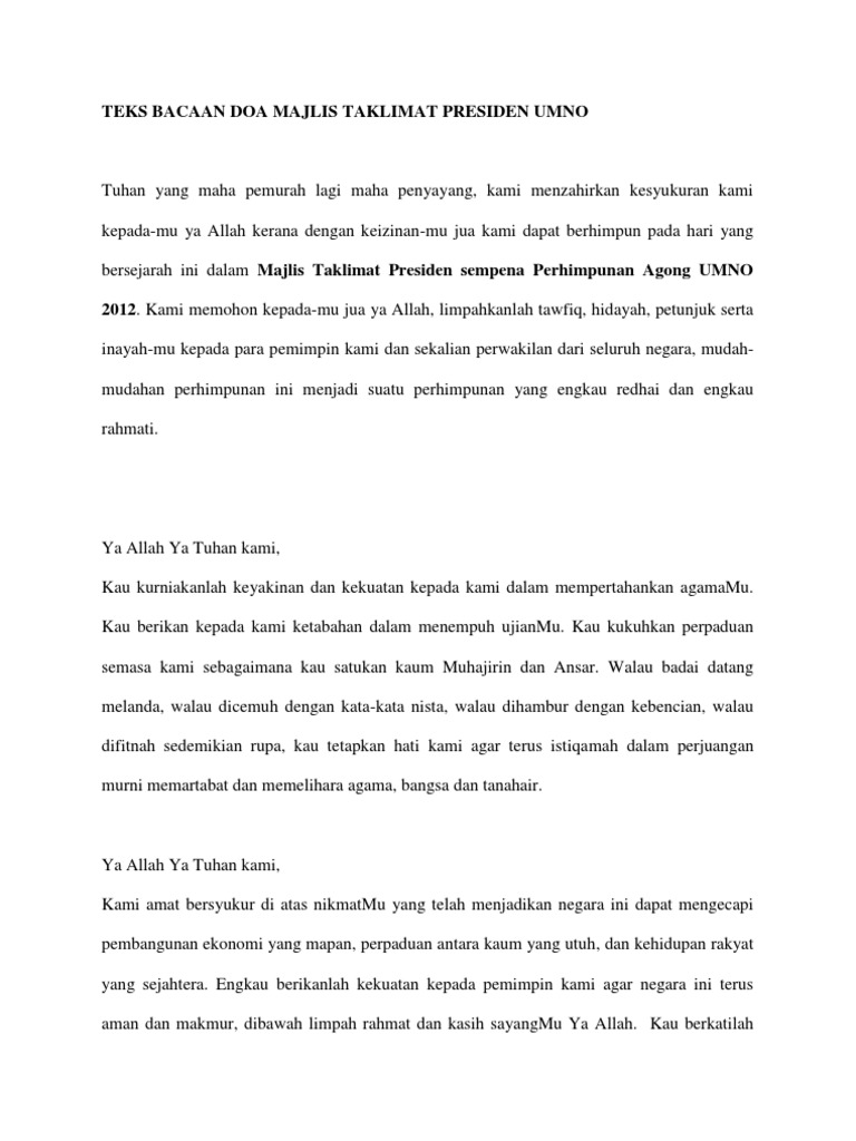 Teks Bacaan Doa Majlis Taklimat Presiden Umno Ver 2 0 Pdf